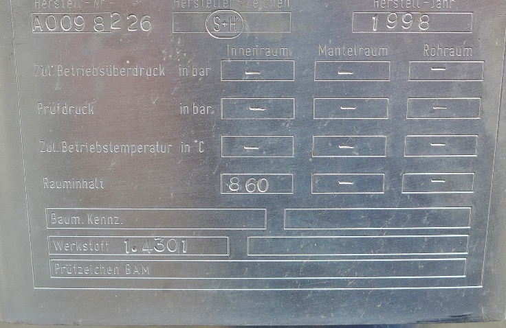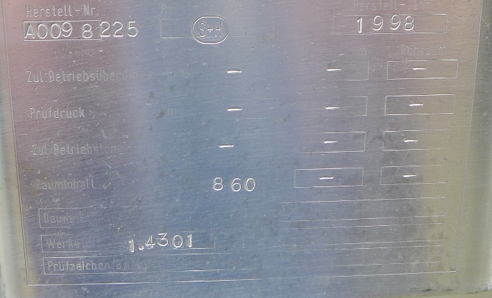 860 liter tank i Rostfritt 304