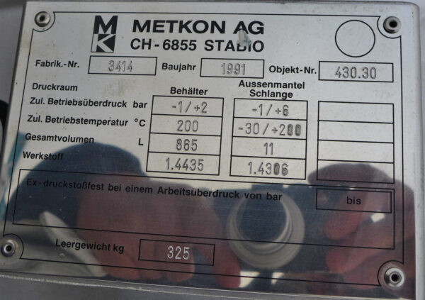 865 liter tank i Syrafast 316