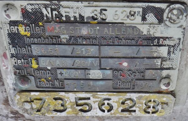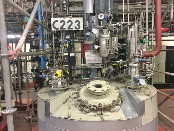 Chemistry; Support ring, Fe; Manhole diameter appr. 480 mm; Total height including agitator gear (without gear approx. 3500 mm); slight pitting inside the vessel; motor is missing;manhole cover