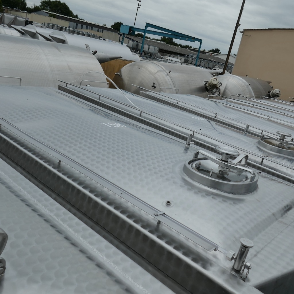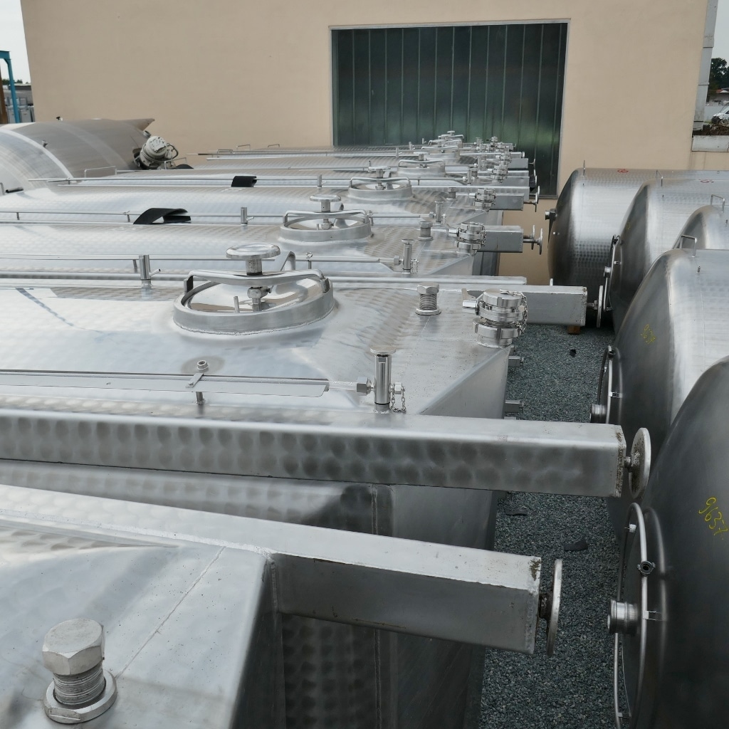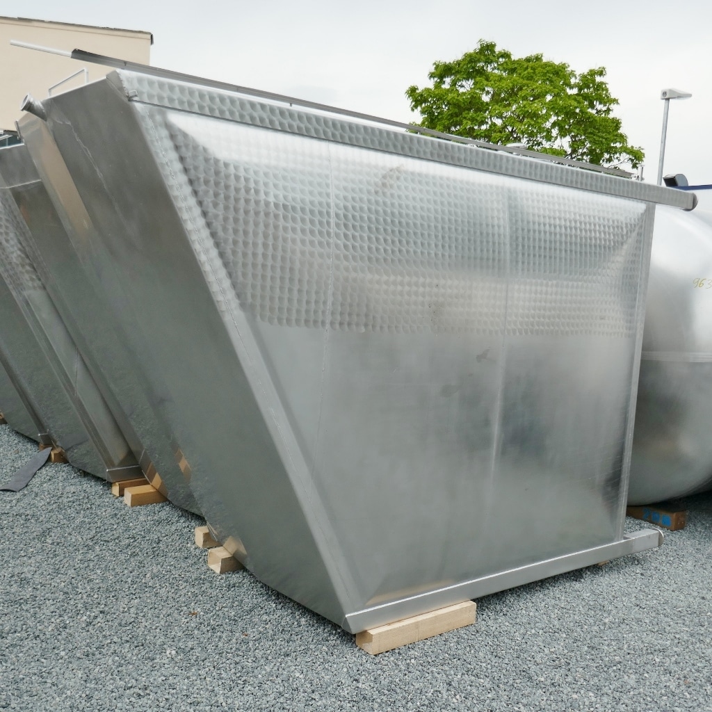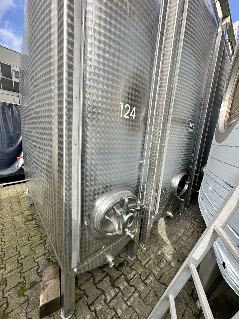 Wine storage; 1 manhole approx. 325 x 420 mm in the front bottom; tanks were professionally cleaned and overhauled by the manufacturer in 2024; brand new residual drain valves (screwed on to reduce