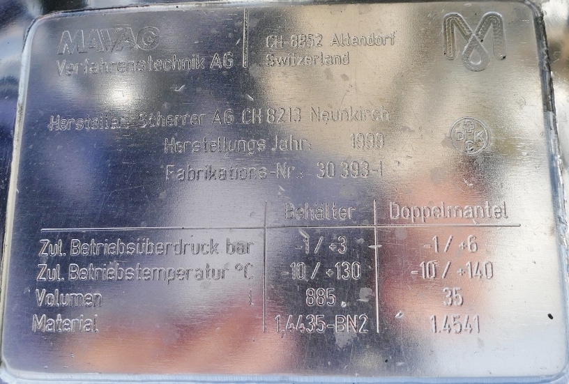 885 liter tank i Syrafast 316