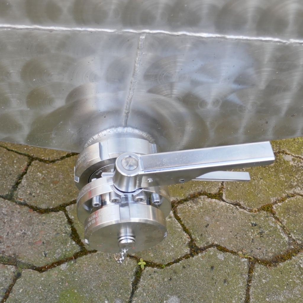the outlet to DN 50 DIN 11851 (with butterfly valve)) and manhole seals were installed; walls curved outwards