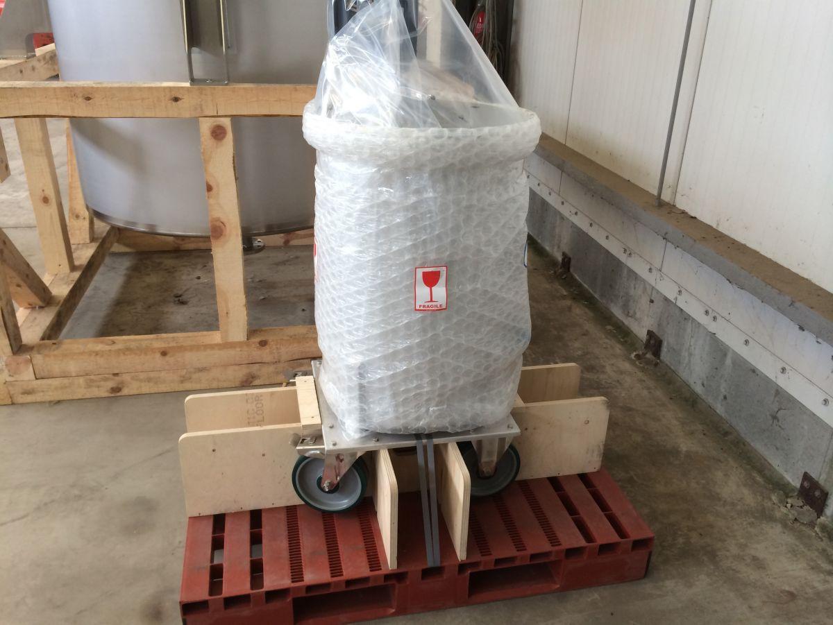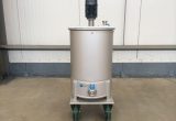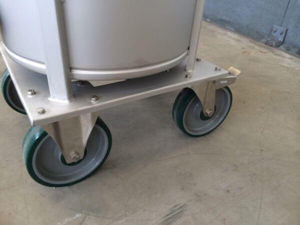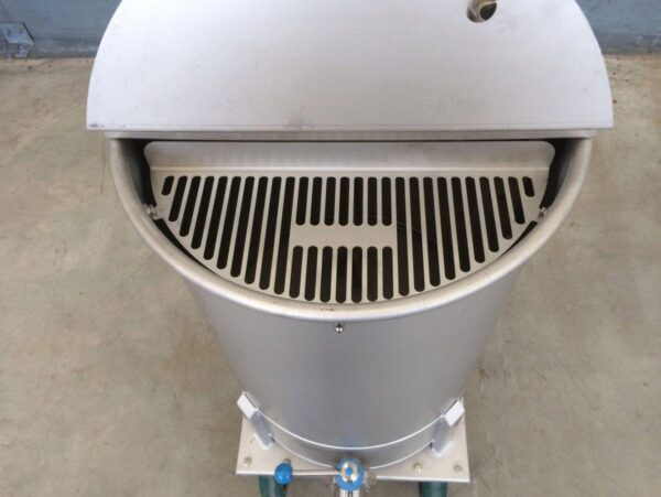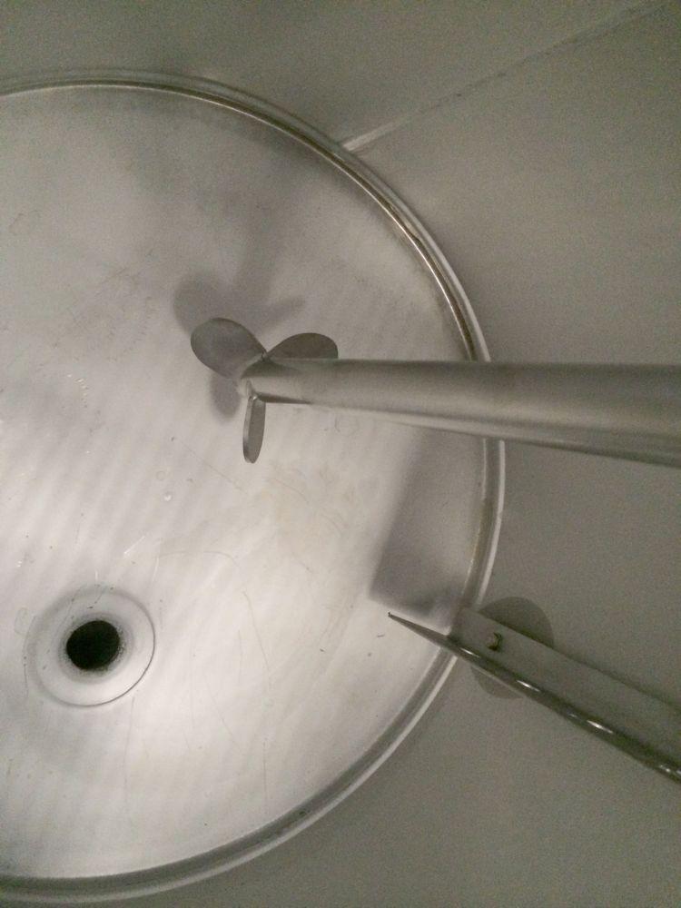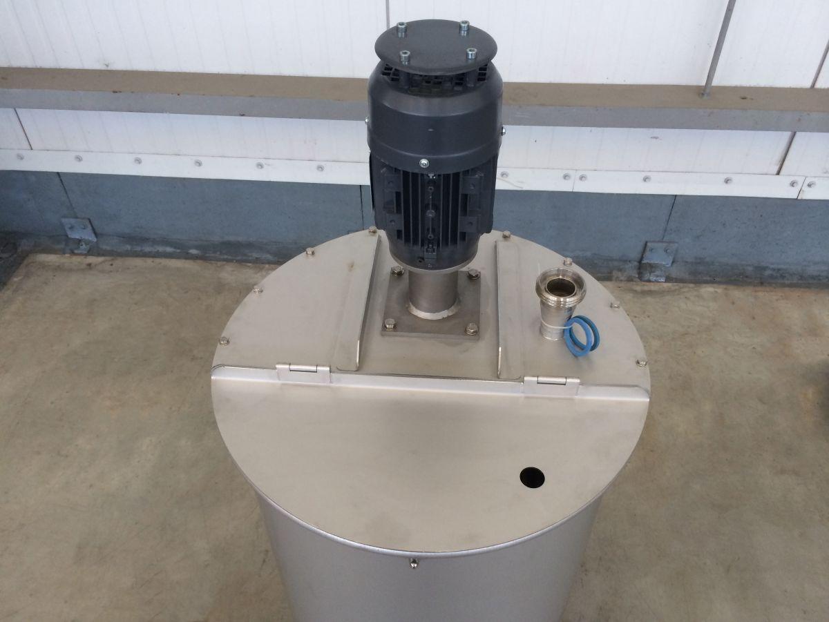 closed tank on 4 stainless wheels; propellor agitator in SS stainless-steel AISI 304 (V2A): 0,37 kW – 1.500 rpm; lantern ring in stainless-steel; discharge valve DIN11851; CIP sprayball 1/2; we