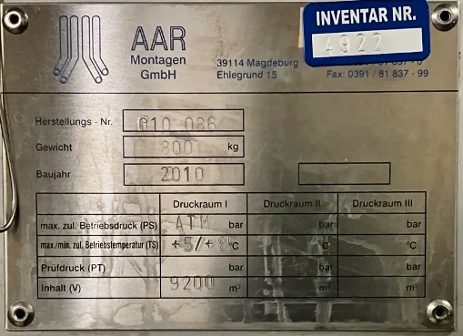 9200 liter tank i Syrafast 316