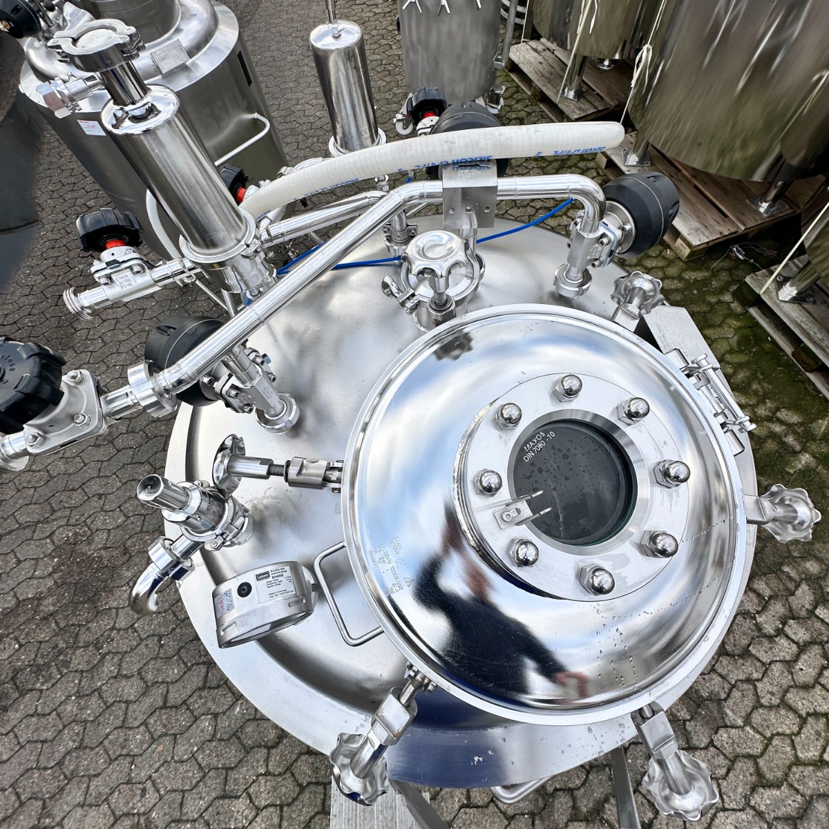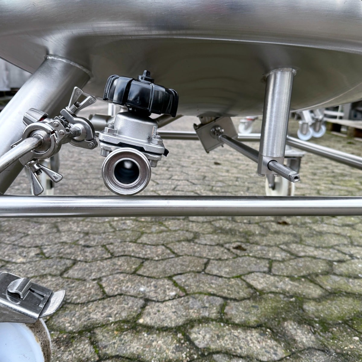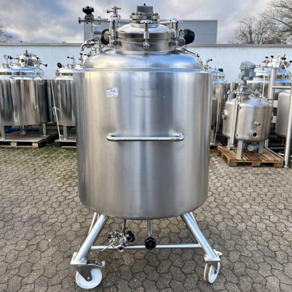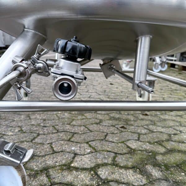 pharmacy; a tank with a bump in the insulating jacket (see pictures); filling pipe inside the tank (see pictures); GEMÜ diaphragm valve at the outlet; we can’t give any guarantees about the