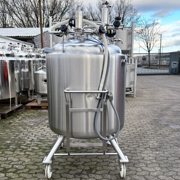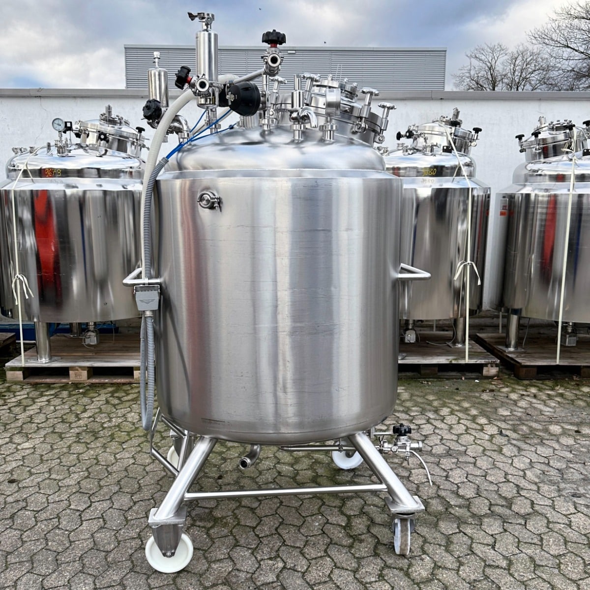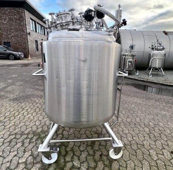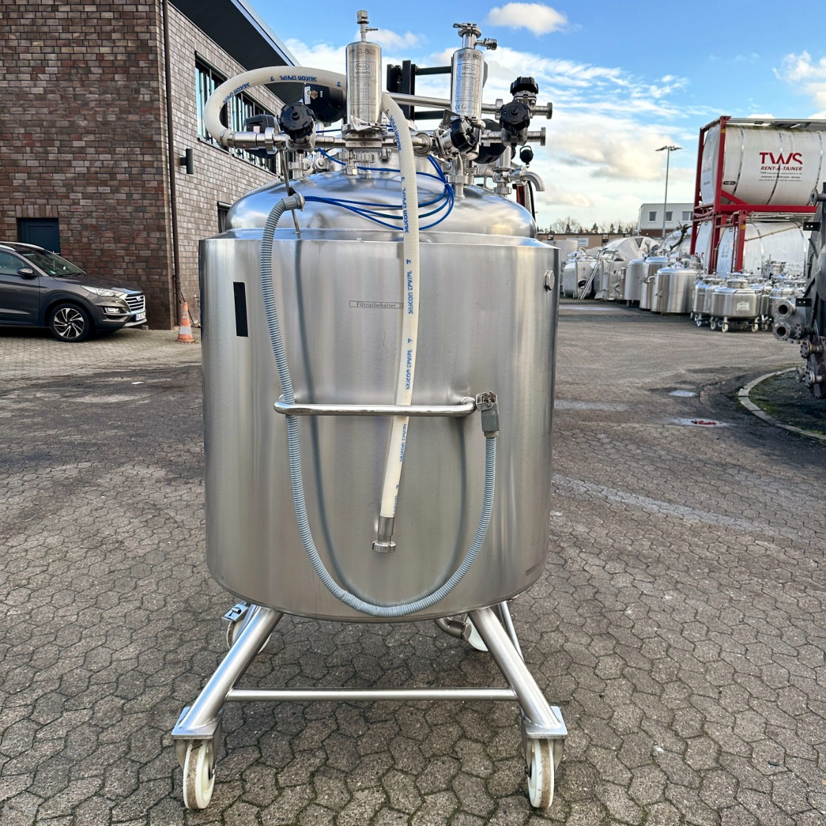 pharmacy; a tank with a bump in the insulating jacket (see pictures); filling pipe inside the tank (see pictures); GEMÜ diaphragm valve at the outlet; we can’t give any guarantees about the