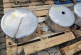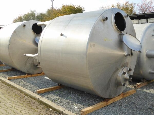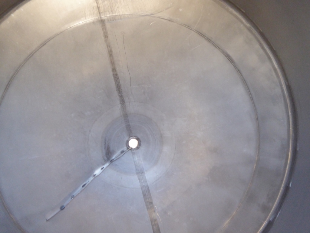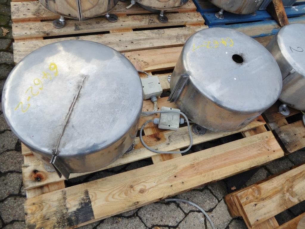 Molkerei; 2 Behälter innen im unteren Boden mit eingeschweißtem Blech; pipe end cut flush; we can’t give any guarantees about the agitator