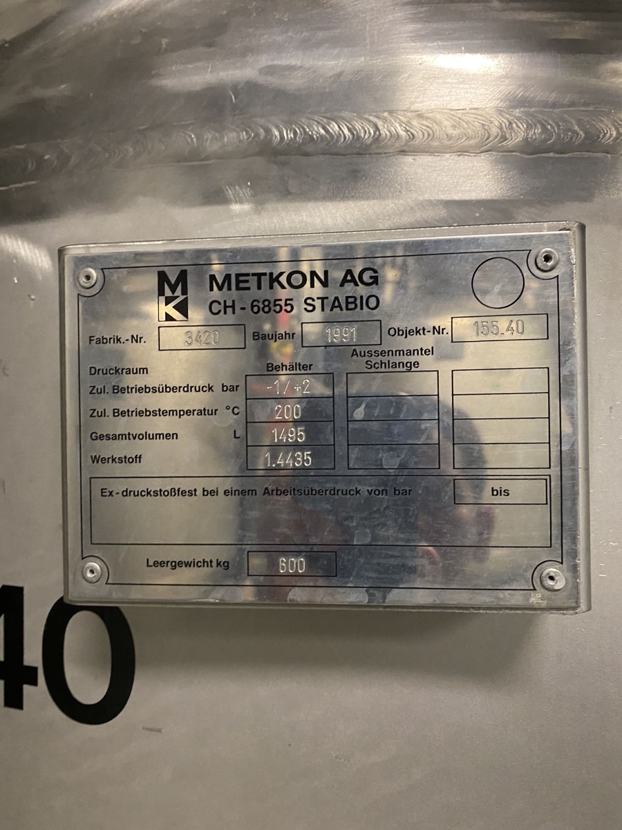 1495 liter tank i Syrafast 316