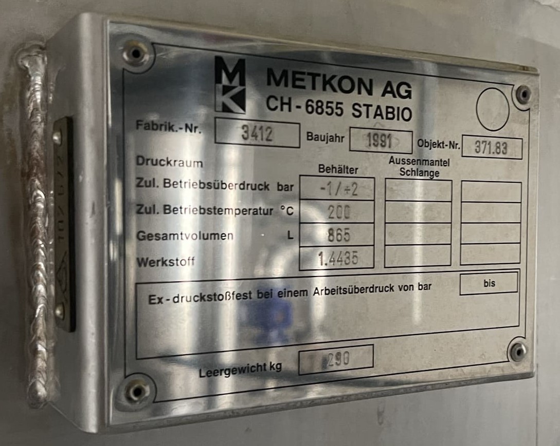 865 liter tank i Syrafast 316