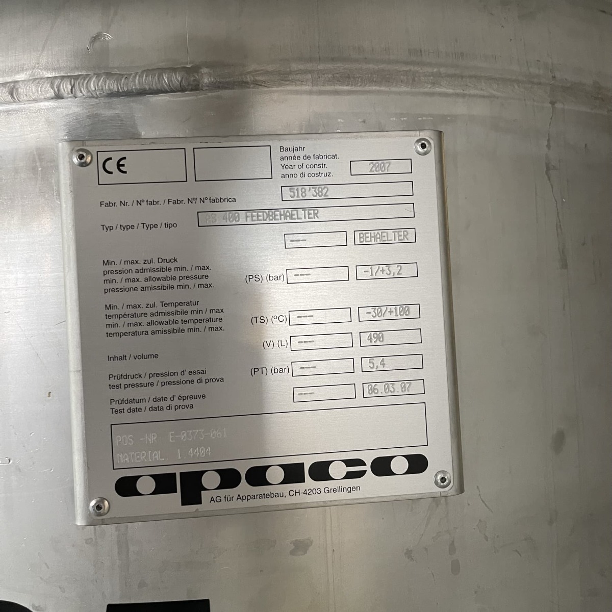 490 liter tank i Syrafast 316