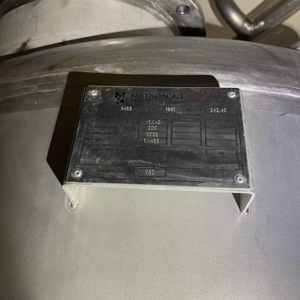 Pharmaceutical chemistry; 3 support brackets, Aisi 304; further technical documents available; different design of the manholes (see photos)
