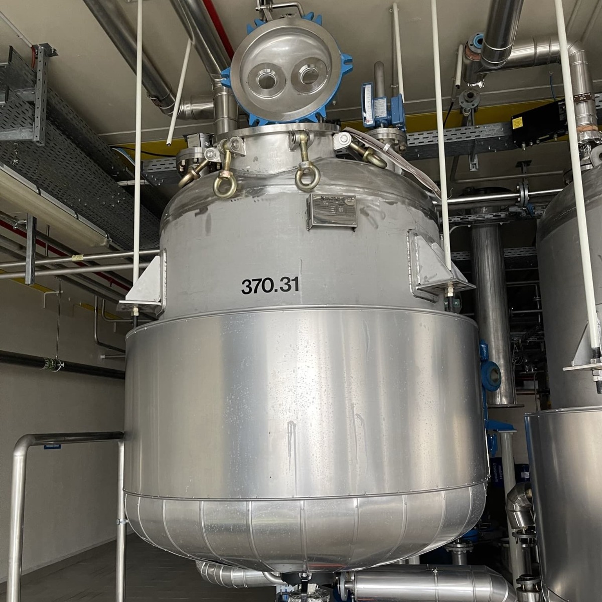 Pharmaceutical chemistry; 3 support brackets, Aisi 304; double jacket for heating/cooling around the lower bottom and the lower cylinder area; double jacket was welded on later and is not included