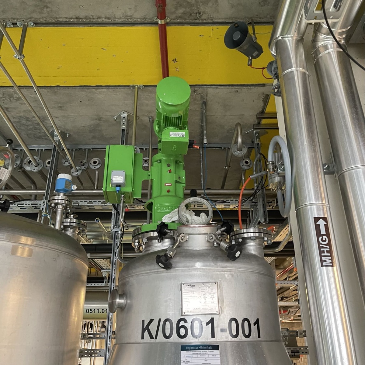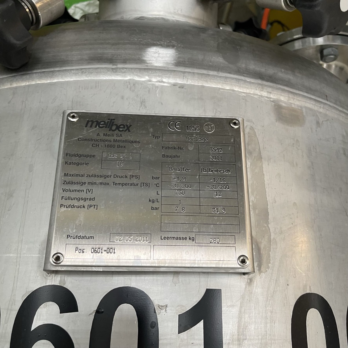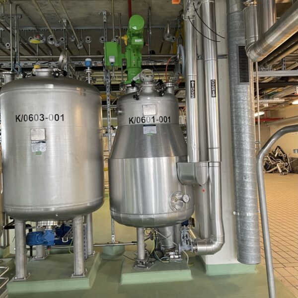 Pharmaceutical chemistry; Half-coil for heating/cooling around the lower cylindrical area and the lower bottom; hand hole diameter 150 mm; outlet fitting incomplete; Device for load cells under the