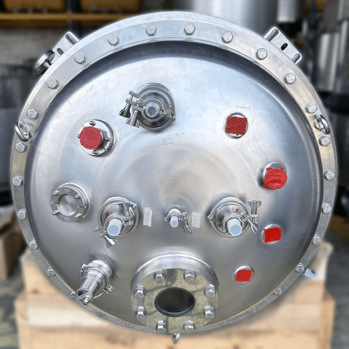 Tank was manufactured for a global pharmaceutical company but was never put into operation; hand hole with sight glass diameter: 285mm; incl. Südmo single-seat valve SVP (outlet); we can’t give any