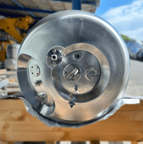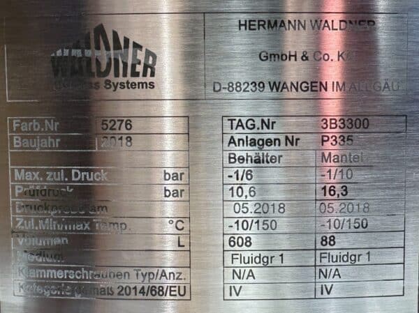 Full set of pharma-compliant technical documentation included in delivery; tank was manufactured for a global pharmaceutical company but was never put into operation; hand hole with sight glass