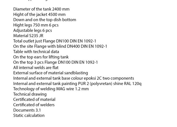 20 000 liter tank i rostfritt 304 eller syrafast 316